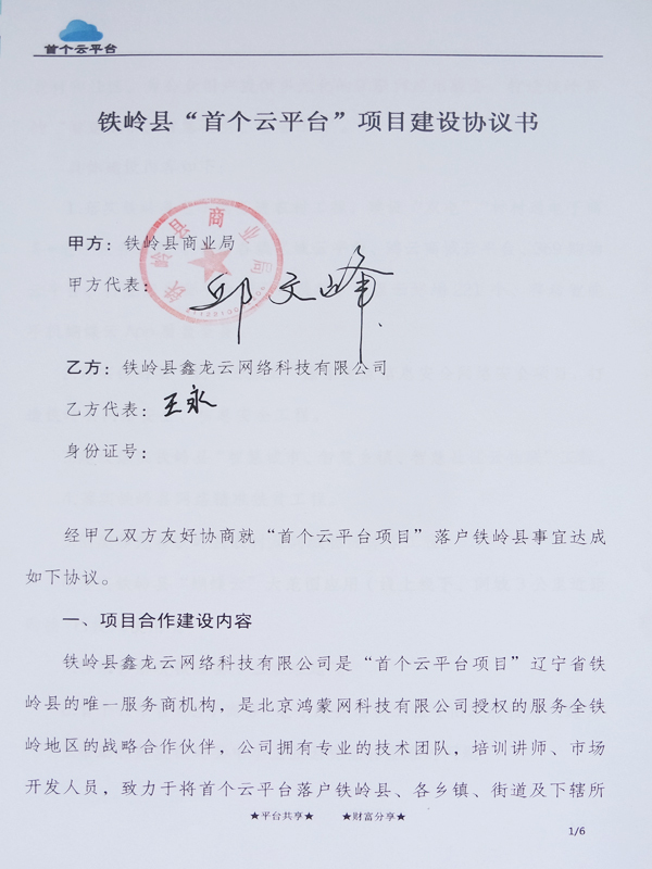 辽宁第一家服务商机构成功与政府签订“首个云平台项目”合作协议
